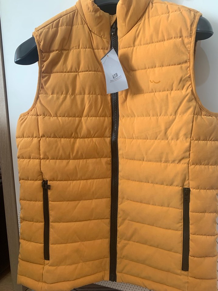 Sıfır etiketli Sarı renkli, fermuarlı ve dik yakalı, yumuşak ve sıcak dokulu erkek yelek. Düzenli kesim ve iki fermuarlı cep içerir. Harika bir dokuya sahip çok sıcak tutar. En 53