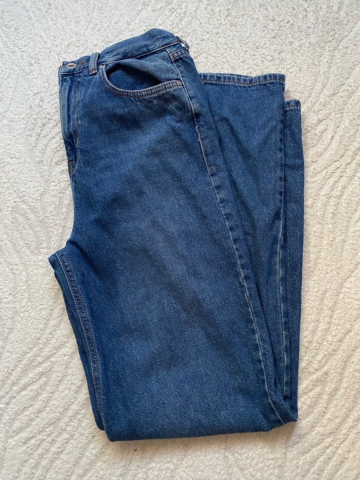 Mavi kot pantolon, bol kesim günlük rahat kullanıma uygun. Desensiz tasarımıyla zahmetsiz şıklık sunar. Dizinde küçücük bi lekesi var son fotografa ekledim