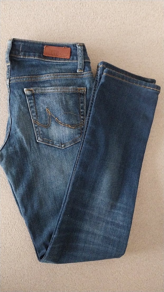 ORJİNALDİR, paça boyu orjinal paça olarak kısalltıldı.34 beden,dar paça, düşük bel eengi koyudur.