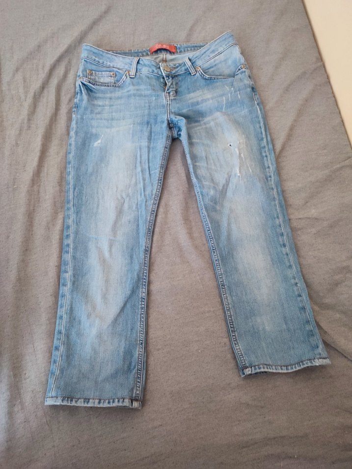 Mavi denimden yapılmış, strait ve midi boy, düşük bel kot pantolon. Sokak stili ve rahat bir görünüm sunar, günlük kullanıma uygundur. Ürün kusursuzdur sadece ben düşük bel giymediğim için satıyorum.