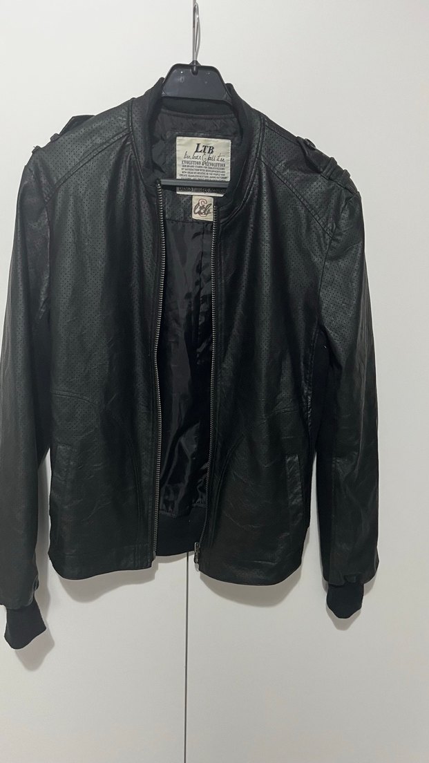 LTB siyah deri biker ceket, çıtçıtlı yakası ve fermuarlı ön kısmı ile dikkat çeker. Uzun kollu ve normal kesimdir, günlük kullanım için uygundur.