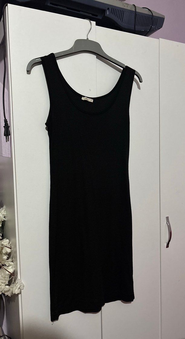 Siyah kolsuz bu triko elbise, vücuda oturan kesimi ve yuvarlak yakası ile minimalist goth tarzını yansıtır. Günlük kullanım için uygundur.
