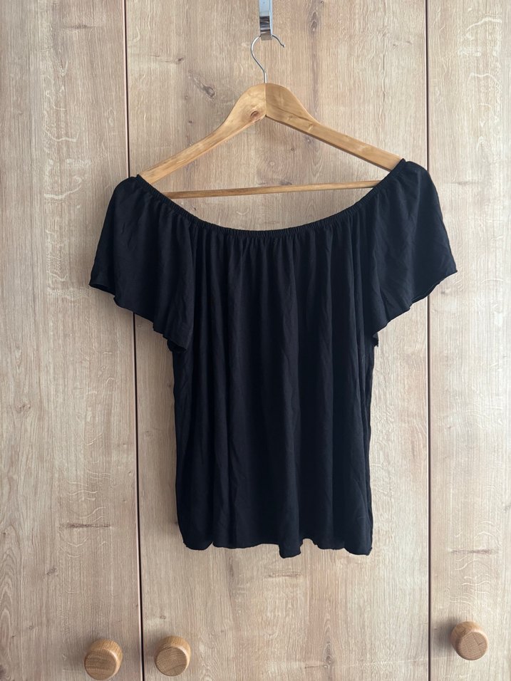 Siyah kumaştan, salaş kesim, kayık yaka ve kısa kollu midi uzunluğunda bluz. Dökümlü tasarıma sahip, günlük kullanım için uygun.