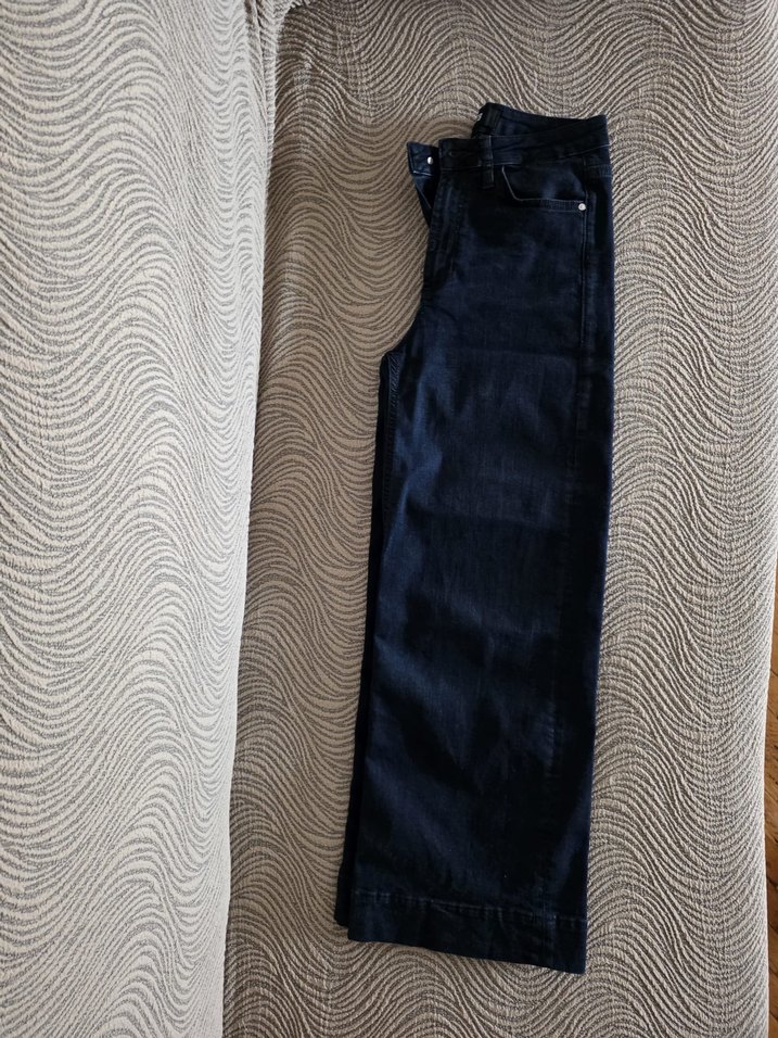 Koyu lacivert, orta-yüksek bel, bel ve kalça kısmı oturuyor aşağı doğru geniş iniyor, 25 beden, şu an LTB websitesindeki Vionne H Dark İndigo gibi