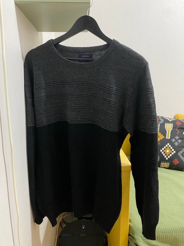 Erkekler için örgü yün kazak, yuvarlak yaka ve bol kesimlidir. Uzun kollu, normal boyda, siyah renktedir, günlük rahat sokak stili için uygundur.