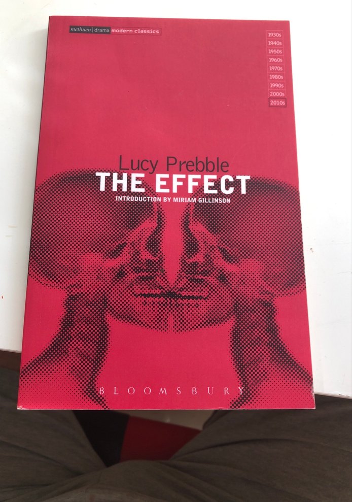 Lucy Prebble'ın The Effect kitabı, Bloomsbury tarafından yayımlanan modern drama eseridir. Kapakta kırmızı ve siyah tonlarda stilize bir görsel bulunur. Şngilizce