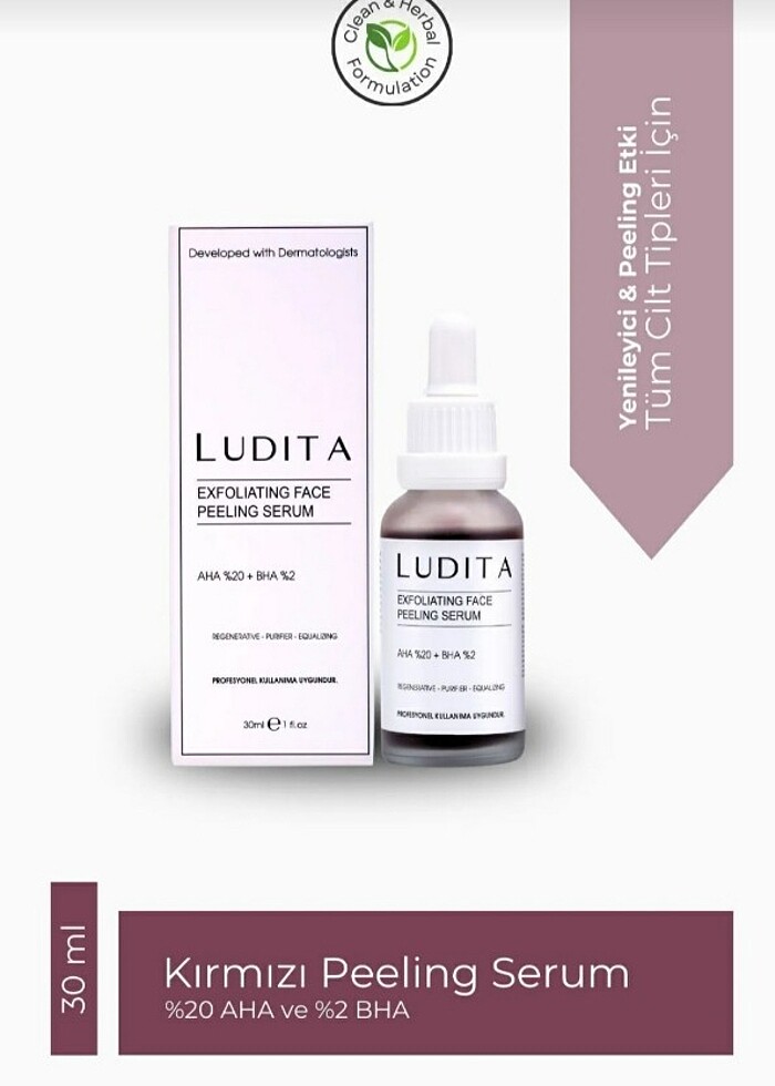 Cilt tonunu eşitlemeye yardımcı olur. İçeriğindeki AHA, BHA ve zengin bitki özleri cildi daha canlı, yumuşak ve pürüzsüz görünüm sağlar. Peeling kırmızı serumu cildi yenilerken cilt tonunun eşitlenmesinde yardımcı olur. NORMALDE FİYATI 400 CİVARI Neden Ludita Yenileyici Cilt Tonu Eşitleyici Yüz Peeling Kırmızı Serumu? İçeriğindeki alfa hidroksit asit ve +eta hidroksi asit ve zengin bitki özleri cildinizi yenilemeye yardımcı olur ve aydınlatır. Boya içermez, kırmızı rengini içeriğindeki bitki özlerinden alır. Tüm Ludita ürünleri; parfüm ve boya içermez. Hayvanlar üzerinde test edilmemiştir.