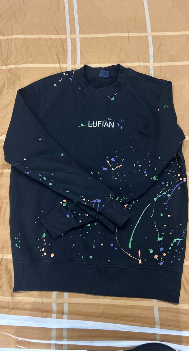 LUFIAN logosu ve ışıltılı detaylarla süslenmiş, çok renkli baskılı, uzun kollu, bol kesim erkek sweatshirt. Sentetik kumaştan, günlük kullanım için uygun. ✨