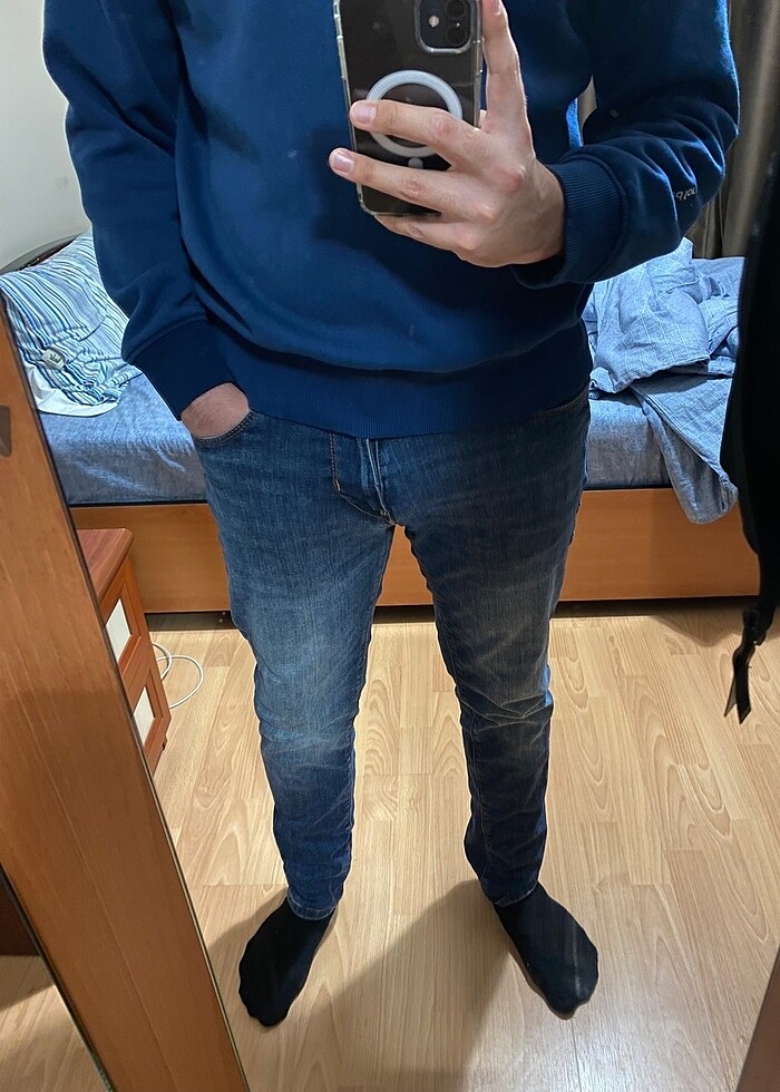 LUFIAN mağazasından aldım. 1.83 boy 83 kiloyum üzerimde duruşu fotoğraflarda mevcut. Esnek ve premium bir kumaşı var lufian kalitesini anlatmaya gerek yok. Herhangi bir defosu vs. yok tertemizdir.