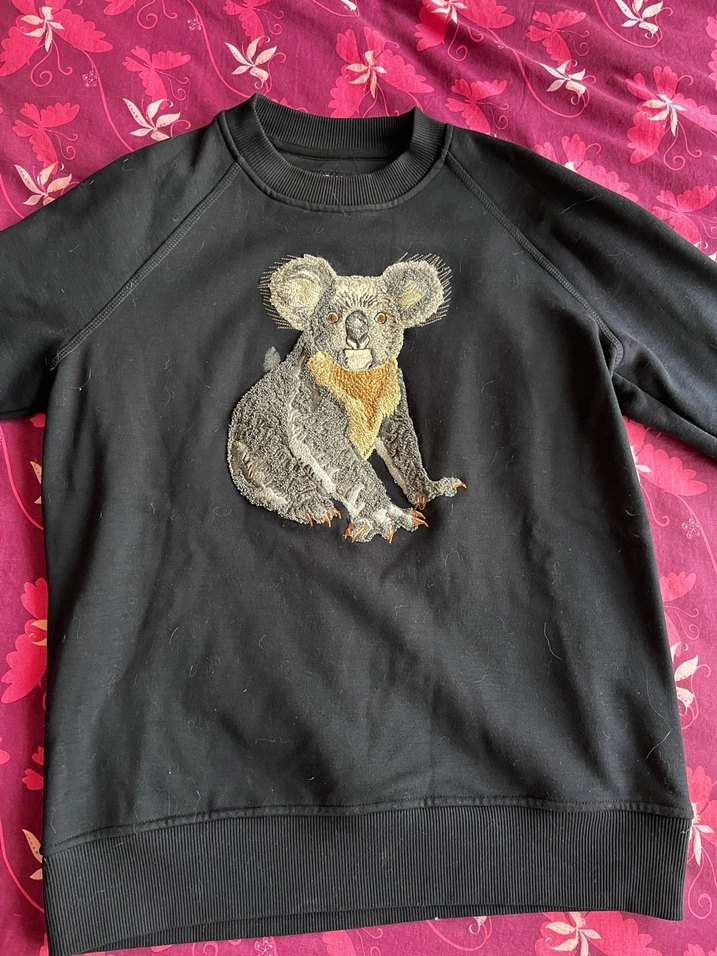 Koyu lacivert renkli, uzun kollu, yuvarlak yakalı kadın sweatshirtü, kürklü koala baskılıdır. Rahat kesim ve normal boyda, günlük kullanıma uygun. Lufian marka tertemiz ustunde sadece kedi tuyu var ben tamamen temizleyip yollayacagim sorunsuz urundur medium beden ancak large falanda cok rahaf giyer oversize cunku