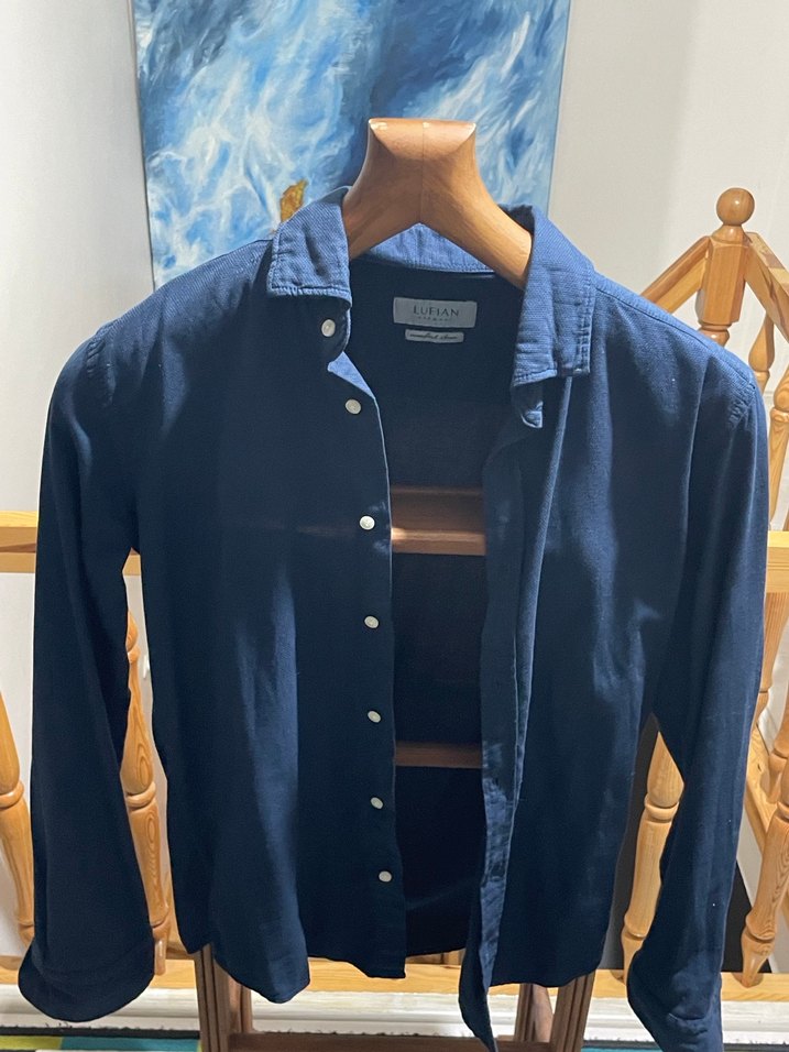 Düğmeli, yakalı ve uzun kollu lacivert denim erkek gömlek. Normal boyda, regular fit kesimle günlük rahat sokak stili için uygundur. Sadece bir kez mezuniyette giyilmiştir tertemiz yeni ürün gibidir.