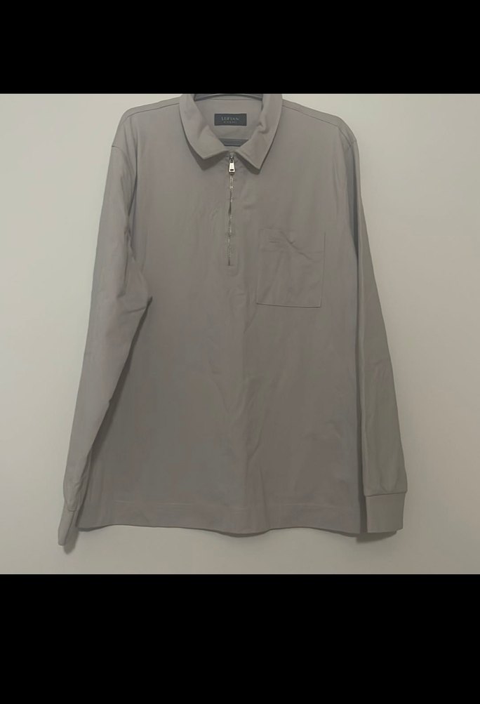 Gri renkte, uzun kollu erkek polo tişört, yakalı ve ön fermuarlı, rahat kesim ve sentetik kumaştan üretilmiştir.