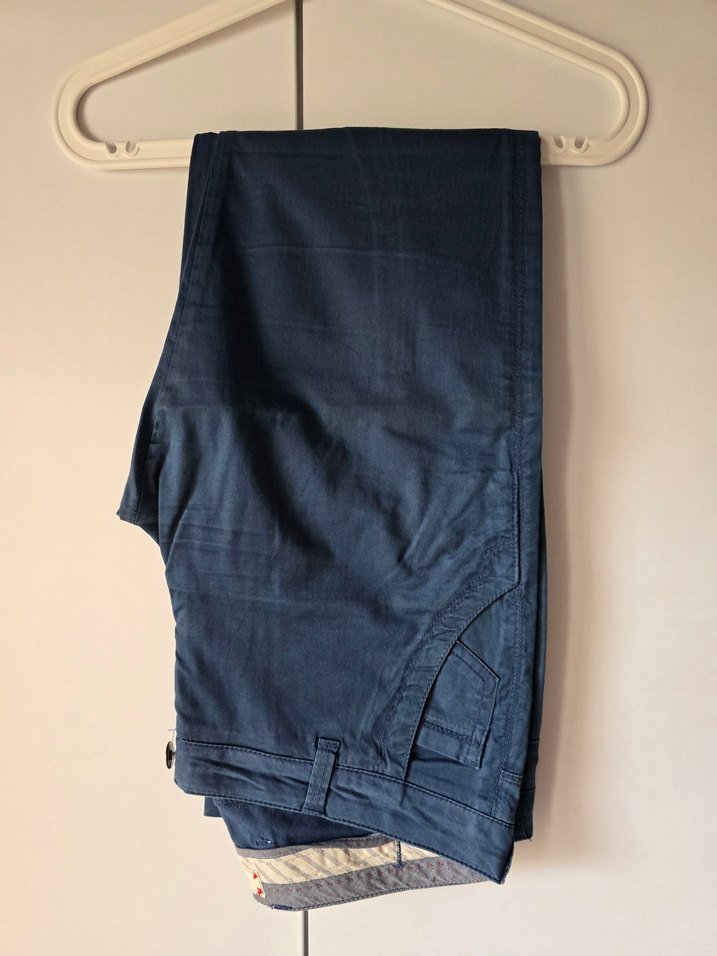 Lacivert renkli, regular fit ve normal boyda keten pantolon. Tokalı detaylarıyla gündelik kullanıma uygun, şık bir parça. ✨