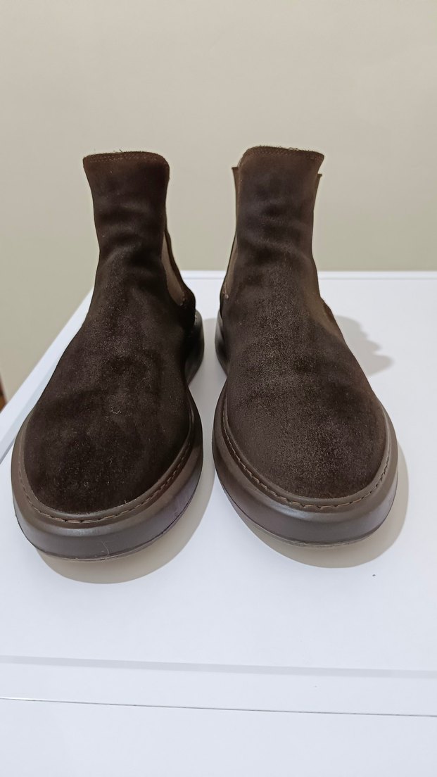 Lufian kahverengi süet erkek bot, minimalist ve desensiz tasarıma sahiptir. Günlük kullanıma uygun, koyu tonlarda ve zahmetsiz şıklık sunar. Herhangi bir kusuru veya deformesi yoktur. Görsellerdeki gibidir.