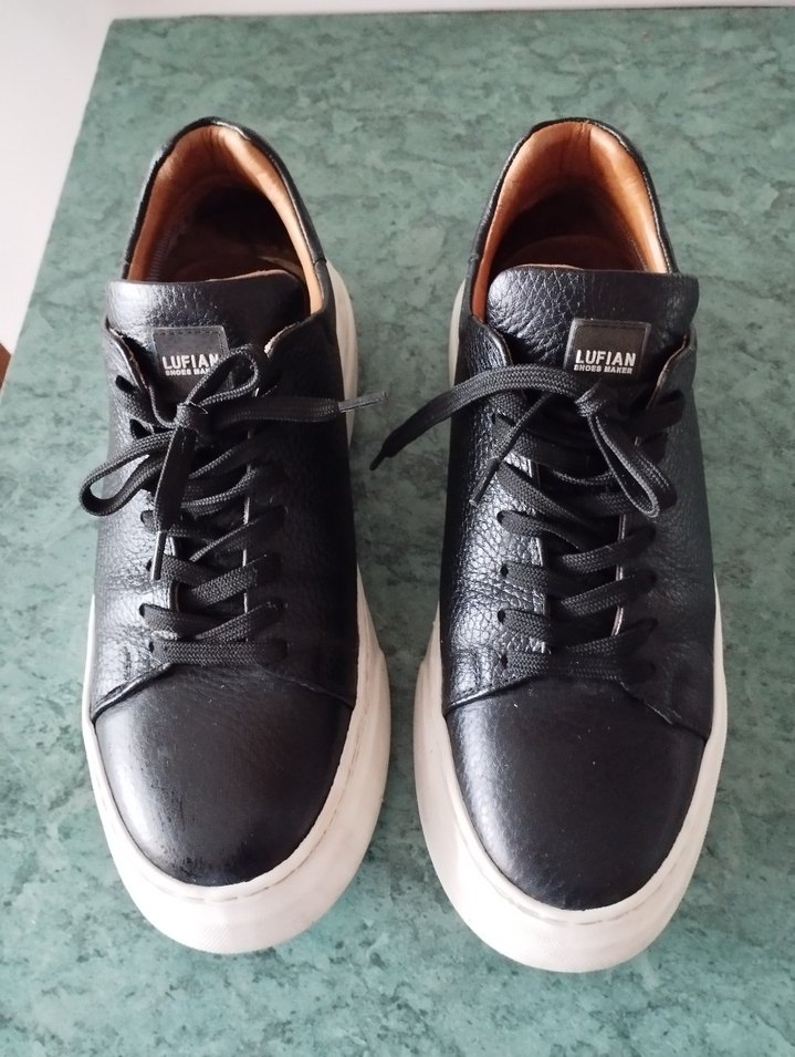 Bağcıklı siyah deri 4 kere kullanıldı sıfır gibi sokak stiline uygun sade tasarıma sahip. Günlük kullanım için rahat tabanlıdır. Marka adı 'LUFIAN' sıfırı mağazada 1800 TL dir