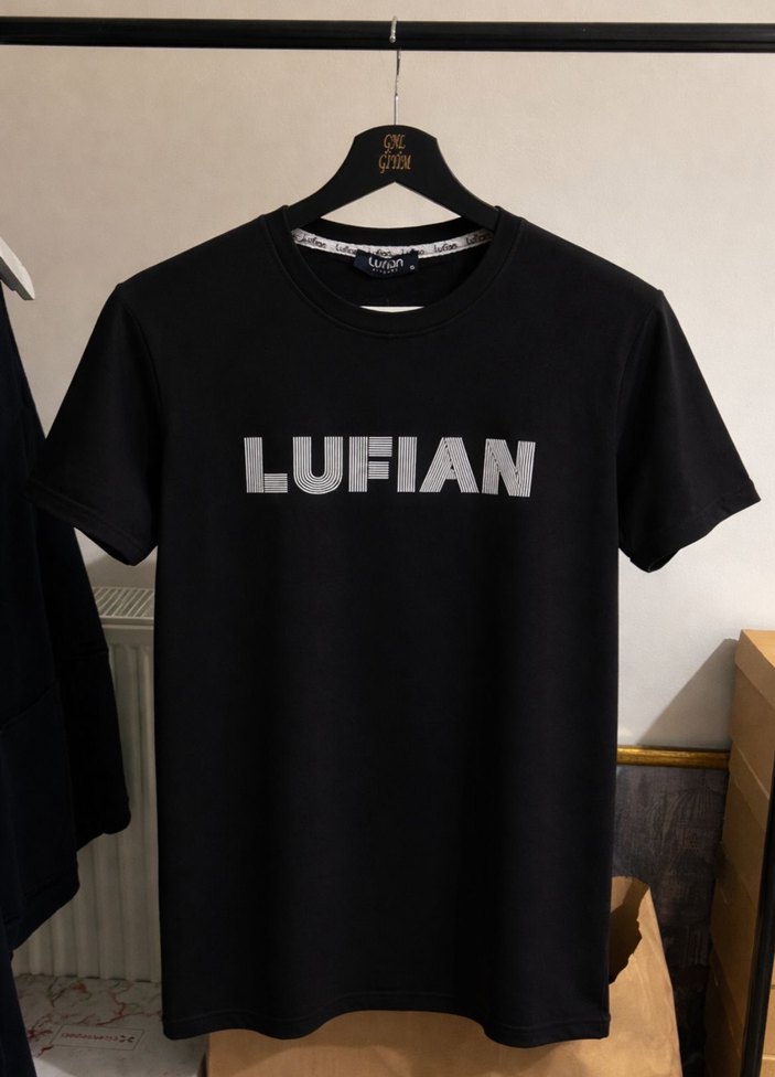 LUFIAN baskılı, siyah kısa kollu erkek tişörtü, yuvarlak yaka ve bol kesimlidir. Sentetik kumaştan üretilmiştir, trend sokak stiline uygundur.