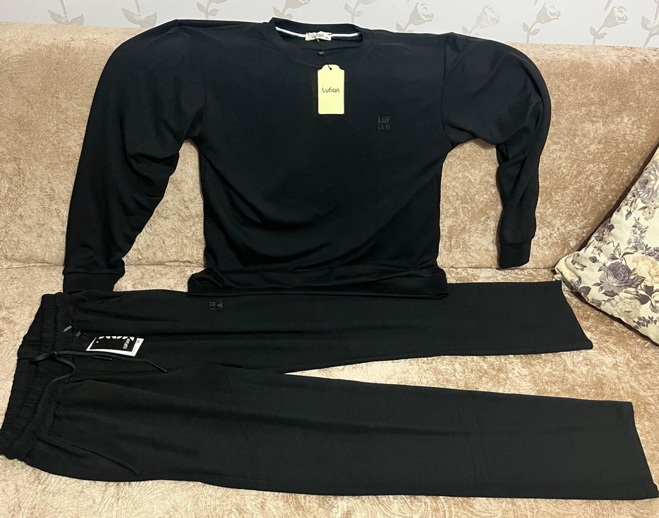 Lufian Siyah renk, oversize kesim ve uzun kollu, yuvarlak yaka Unisex eşofman takımı. Yumuşak ve sıcak kumaştan, rahat ve şık bir günlük stil sunar.