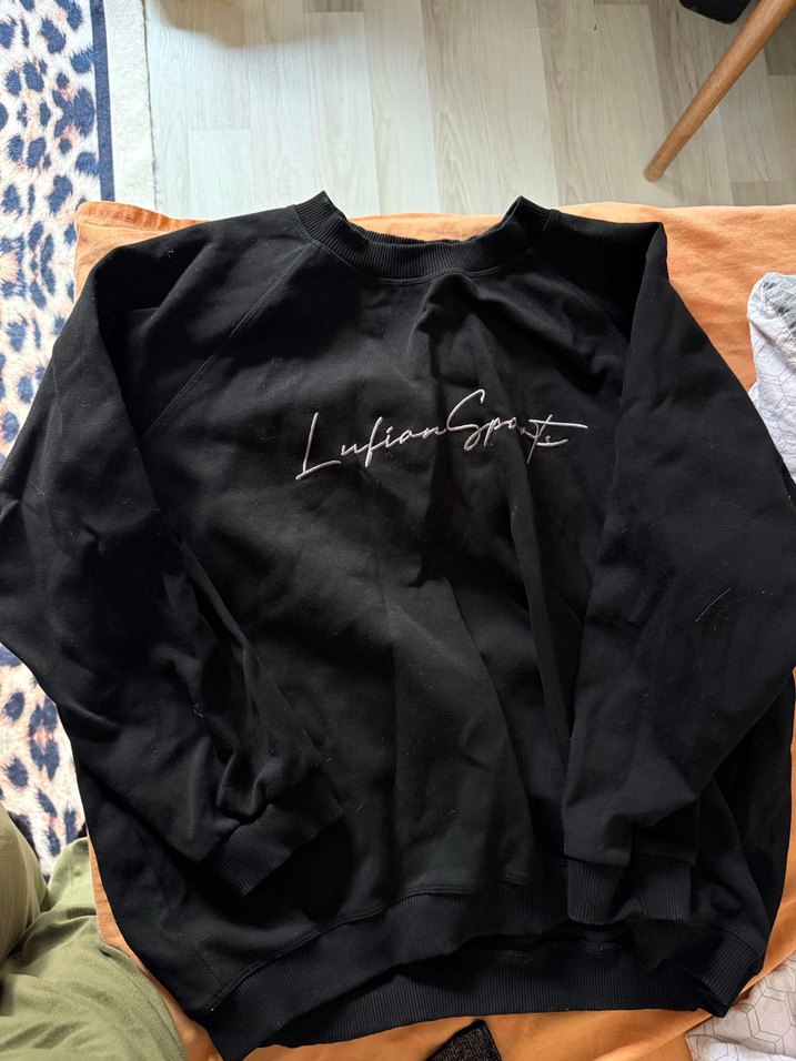 Siyah, uzun kollu, bisiklet yaka sweatshirt. Yumuşak keten kumaştan, bol kesim ve baskılı tasarıma sahip. Günlük kullanıma uygun, bağcıklı detaylarıyla dikkat çekiyor.