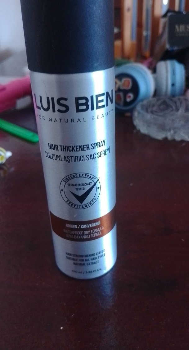 Luis Bien kahverengi saç dolgunlaştırıcı sprey, zeytin özü içeren suya dayanıklı kuru formüle sahiptir. Dermatolojik olarak test edilmiştir. ♂️