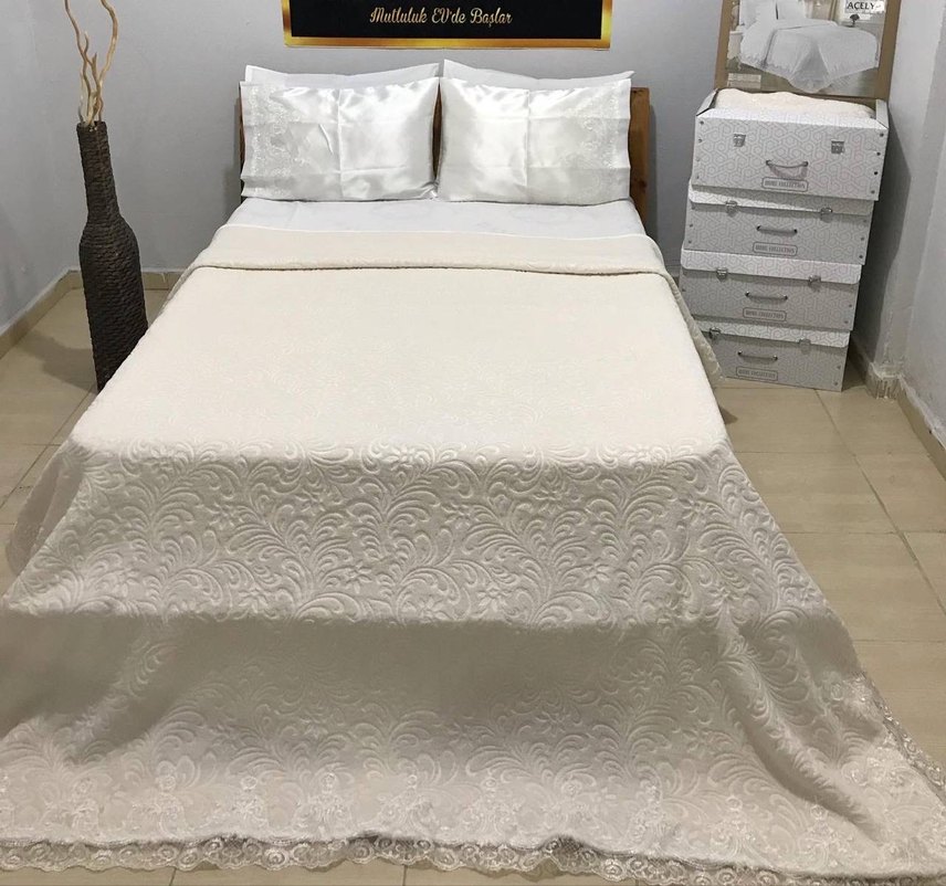 ✨Lüks Battaniye Setleri Fransız güpürlü ☁️%100 Pamuk Renk: Gri-Capucino-Pudra-Beyaz Battaniye ve 2 adet yastık kılıfı dantel ile işlenmiştir. Paket İçeriği 1 Adet 230 x 250 cm Battaniye 1 Adet 240 x 260 cm Çarşaf 2 Adet 50 x 70 cm Yastık Kılıfı 2 Adet 50 x 70 cm Dantelli Dekoratif Yastık