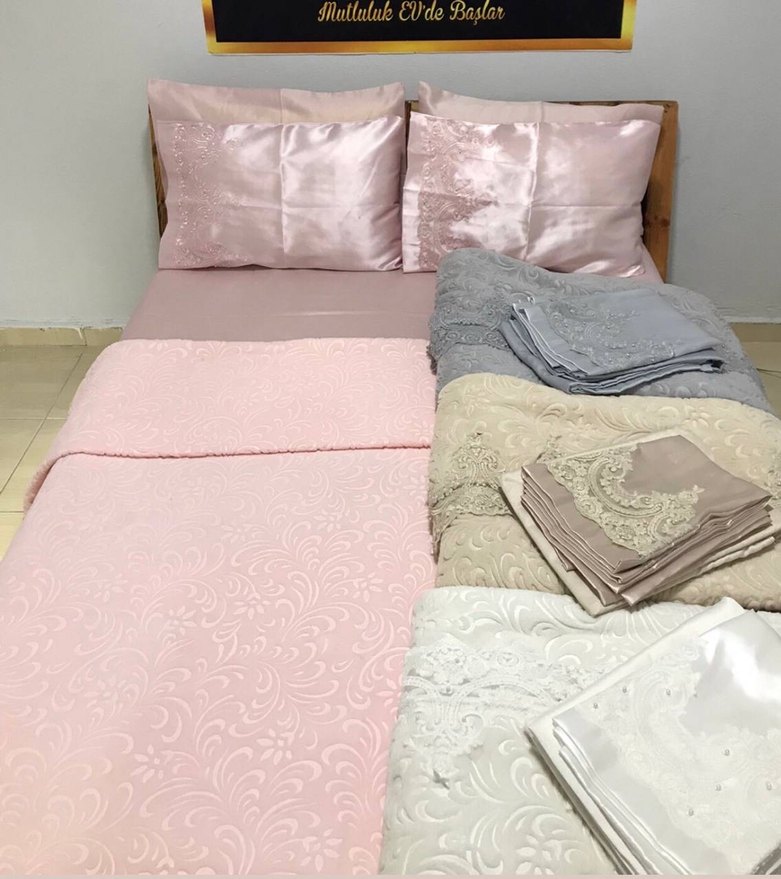 ✨Lüks Battaniye Setleri Fransız güpürlü ☁️%100 Pamuk Renk: Gri-Capucino-Pudra-Beyaz Battaniye ve 2 adet yastık kılıfı dantel ile işlenmiştir. Paket İçeriği 1 Adet 230 x 250 cm Battaniye 1 Adet 240 x 260 cm Çarşaf 2 Adet 50 x 70 cm Yastık Kılıfı 2 Adet 50 x 70 cm Dantelli Dekoratif Yastık (6PRC)