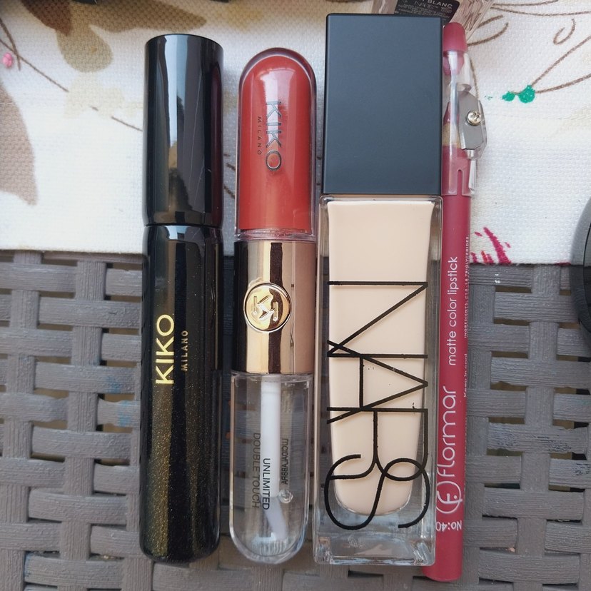 set icerigi kiko 128 nolu cift tarafli lipstick nars fondöten kiko maskara ve flormar dudak kalemi