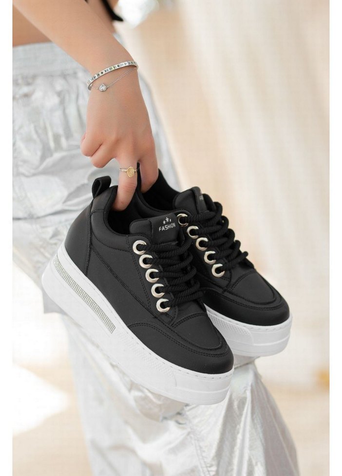 Lulu Siyah Cilt Beyaz Tabanlı Bağcıklı Spor Ayakkabı
