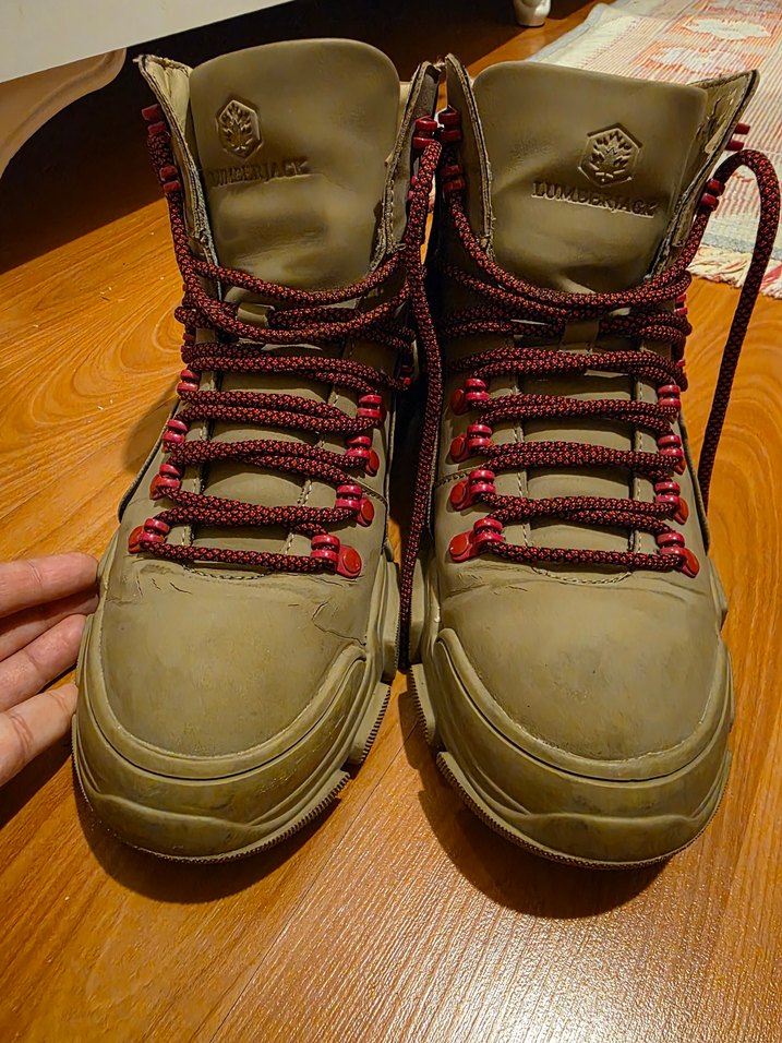 ürün sağlamdır. çizikleri göstermek için detaylı çektim lüften inceleyin lumberjack 40 numara Kahverengi yüksek topuklu kauçuk botlar, kırmızı bağcıklarla tamamlanmış. Sokak stili ve athleisure için uygun, dış mekan kullanımı için tasarlanmış modern ve yenilikçi tasarım.
