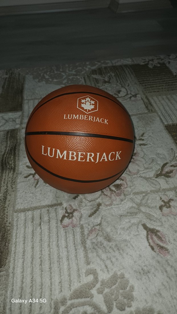 Kahverengi baskılı desenli ve Lumberjack markalı bu basketbol topu, spor için uygun kauçuk yüzeye sahiptir.