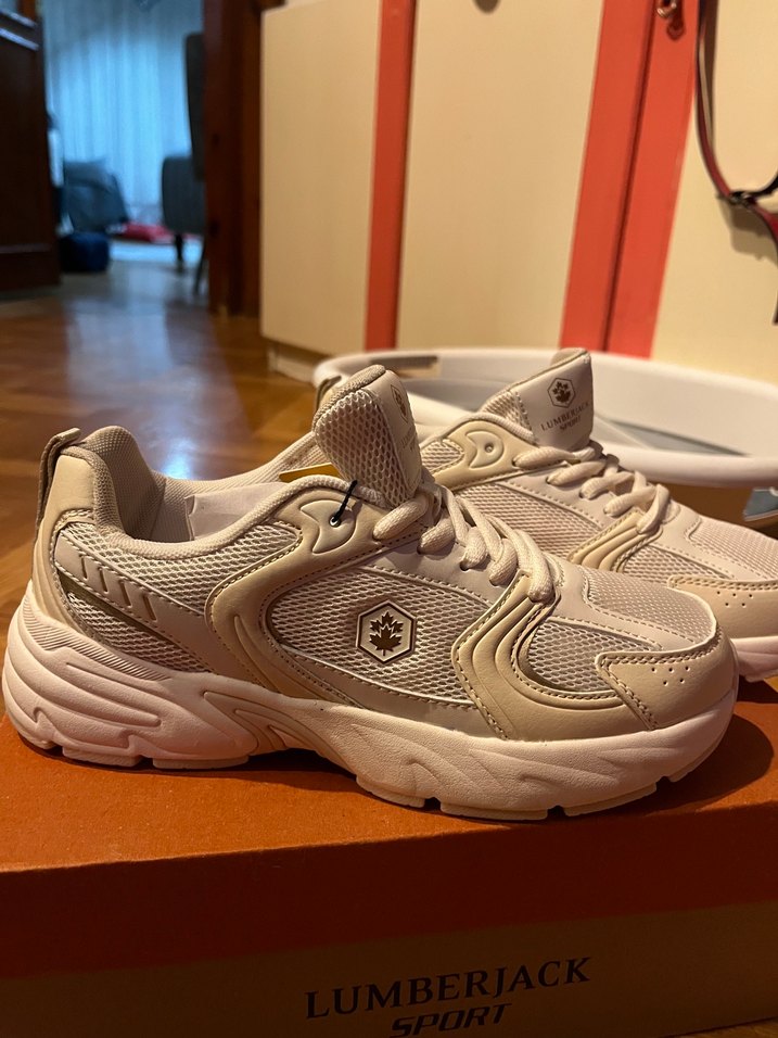 Lumberjack markalı, bağcıklı ve kauçuk tabanlı beyaz platform topuklu spor ayakkabı, sportif ve sokak tarzı için uygundur.