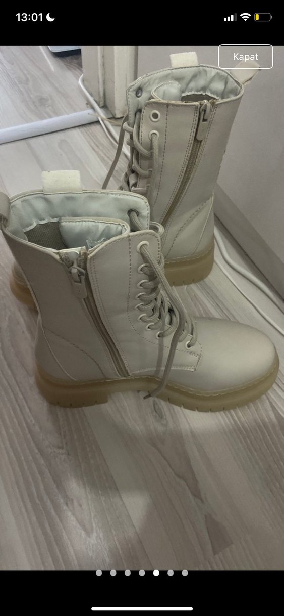 Beyaz kadın botları, dolgu topuklu ve fermuarlı tasarıma sahiptir. Kauçuk malzemeden olup sokak stiline uygundur.