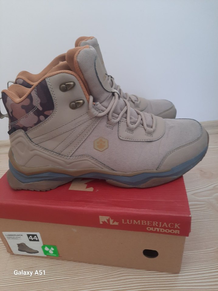 44 numara lumberjack Bej renkli, kamuflaj desenli, bağcıklı ve kauçuk tabanlı outdoor erkek bot. İyi durumdadır