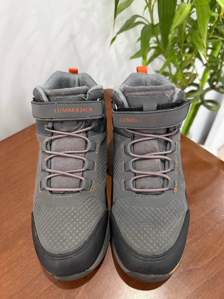 Velcro kapamalı, baskılı detaylı gri erkek çocuk spor ayakkabısı. Dayanıklı kauçuk tabanlı, Lumberjack 35 numara, son resimde ayakkabı üstüne sivri taş düştüğü için kesti orayı, küçük bir dikişle ayakkabıcı halleder, onun dışında sorunsuz, sadece 2 ay giyildi ayağına küçüldü, sağlam yepyeni