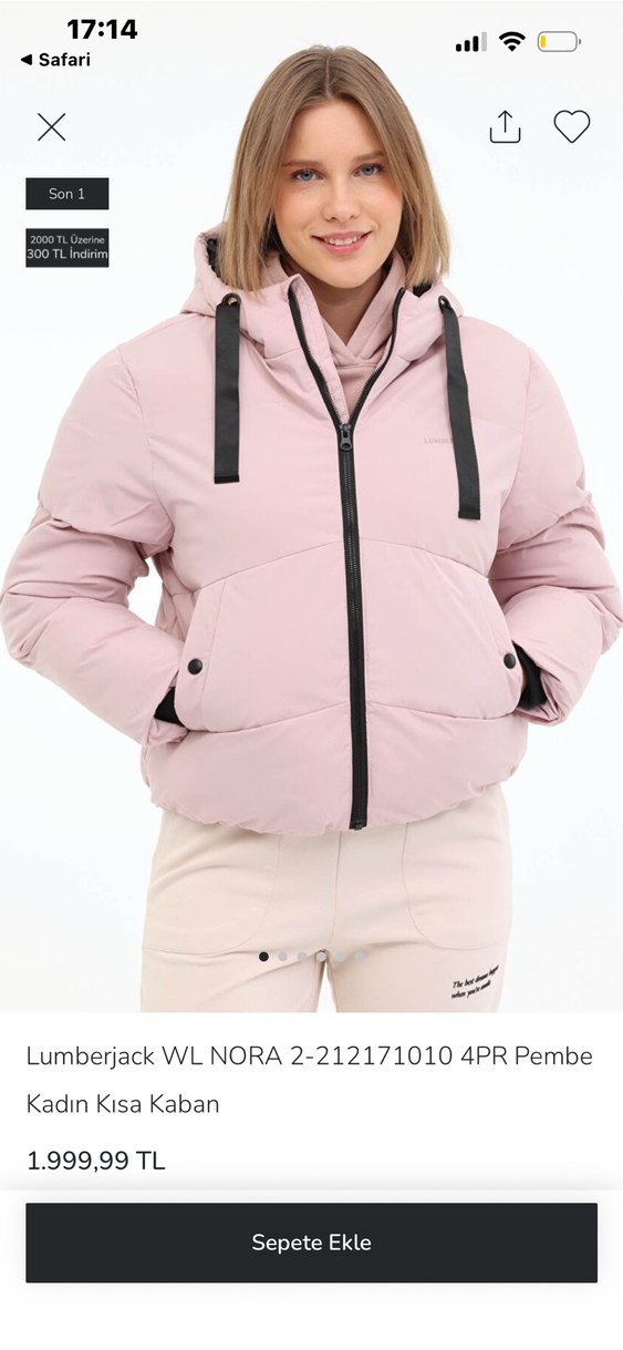 Lumberjack pembe renkli, kısa kesim, yüksek yakalı ve uzun kollu kadın kabanı. Yumuşak sentetik kumaştan üretilmiş, fermuarlı ve günlük kullanıma uygun şık bir parça.