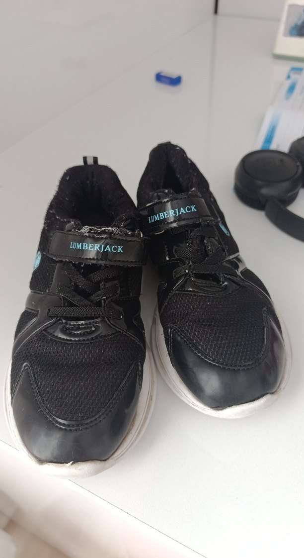 Lumberjack kız çocuk siyah spor ayakkabılar, kauçuk taban ve cırt cırtlı kapanışa sahiptir. Trendy günlük sokak stili için uygundur. Marka adı bantta yer alır.
