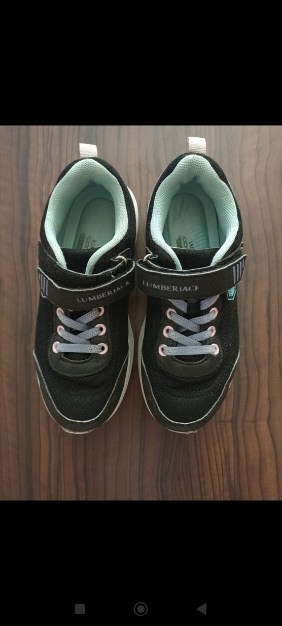Turkuaz ve siyah renklerde, Velcro bantlı ve kauçuk tabanlı kız çocuk spor ayakkabısı, sokak stili için uygun. ️burun kısmı fotoda göründüğü kadar ufak bir yıpranması var, kullanıma engel değildir