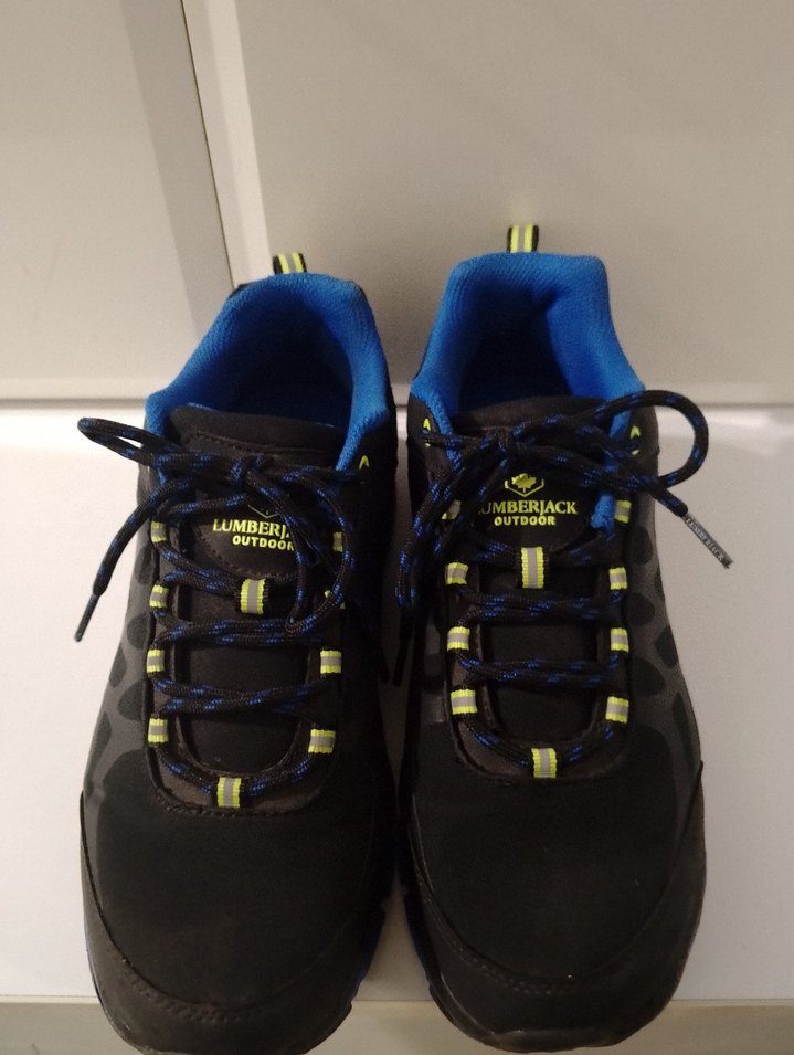 Lacivert renkli, bağcıklı Lumberjack Outdoor erkek spor ayakkabısı. Kauçuk tabanlı, dış mekan için uygun, trend sokak stiline uygun.