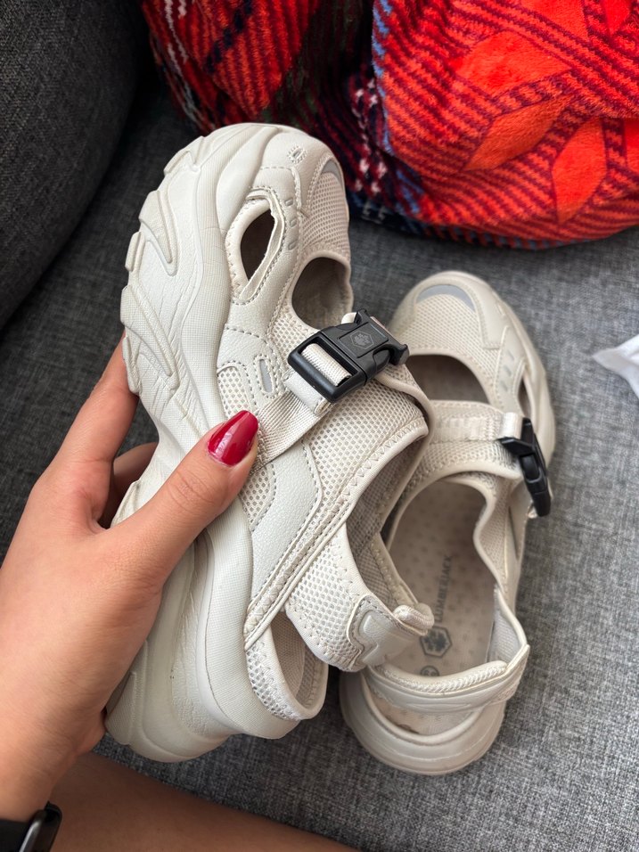 Yüksek tabanlı ve cırt cırtlı beyaz kadın spor ayakkabısı günlük kullanım için uygundur. Ürün 1 kere giyildi