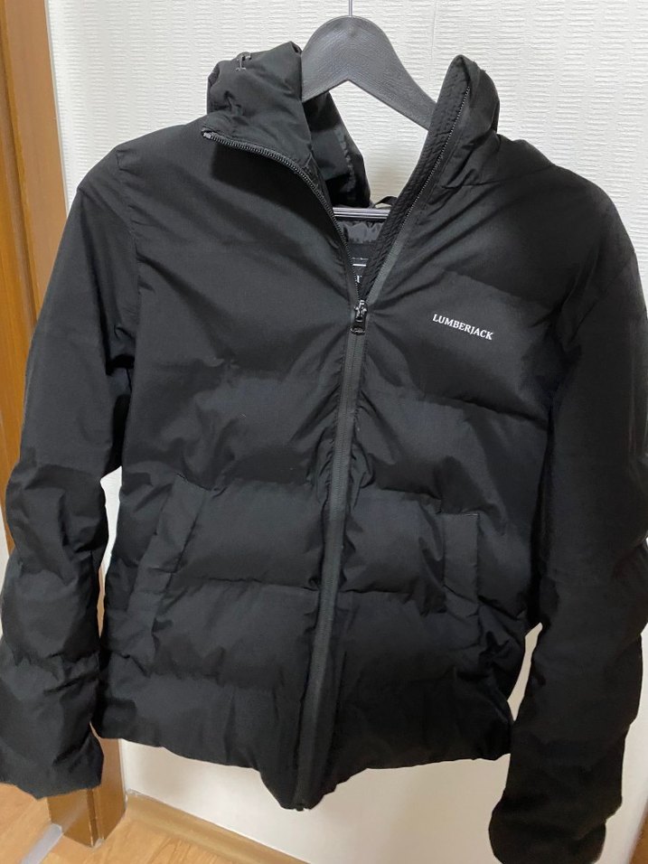 Fermuarlı, yüksek yakalı, siyah kış montu.Xs ve lumberjack.