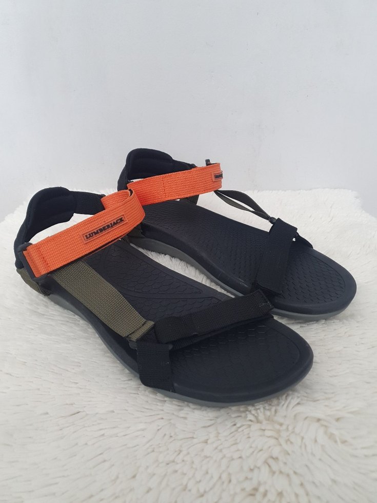 Orijinal ve Sifir Lumberjack Sandalet , canlı turuncu ve siyah cırt cırtlı kayışlara sahip, athleisure ve sokak modası tarzında.