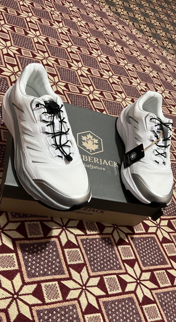 BERJACK markasına ait beyaz ve gri renklerde, bağcıklı, baskılı desenli, kauçuk malzemeden yapılmış günlük kullanıma uygun erkek outdoor ayakkabısı.