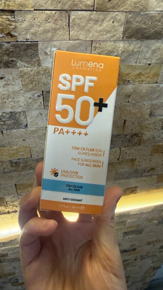 Luména SPF 50+ güneş kremi, PA++++ koruma sağlar. Tüm cilt tipleri için uygundur ve antioksidan içerir.