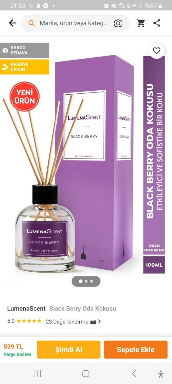 LumenaScent Black Berry reed difüzör, etkileyici ve sofistike siyah böğürtlen kokusuyla 100ml oda kokusu sunar.