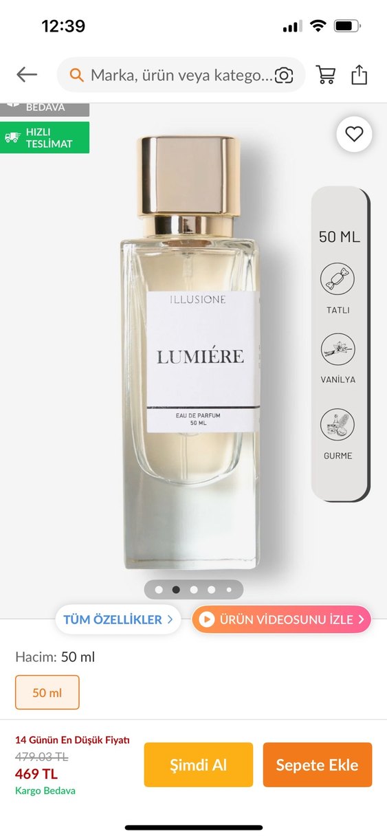 Lumiére Illusione, 50 ml tatlı ve vanilya gurme notalarına sahip kadın parfümüdür. Zengin ve davetkar bir koku sunar. Bi kaç kez kolusuna baktım ama bana hitap etmedi