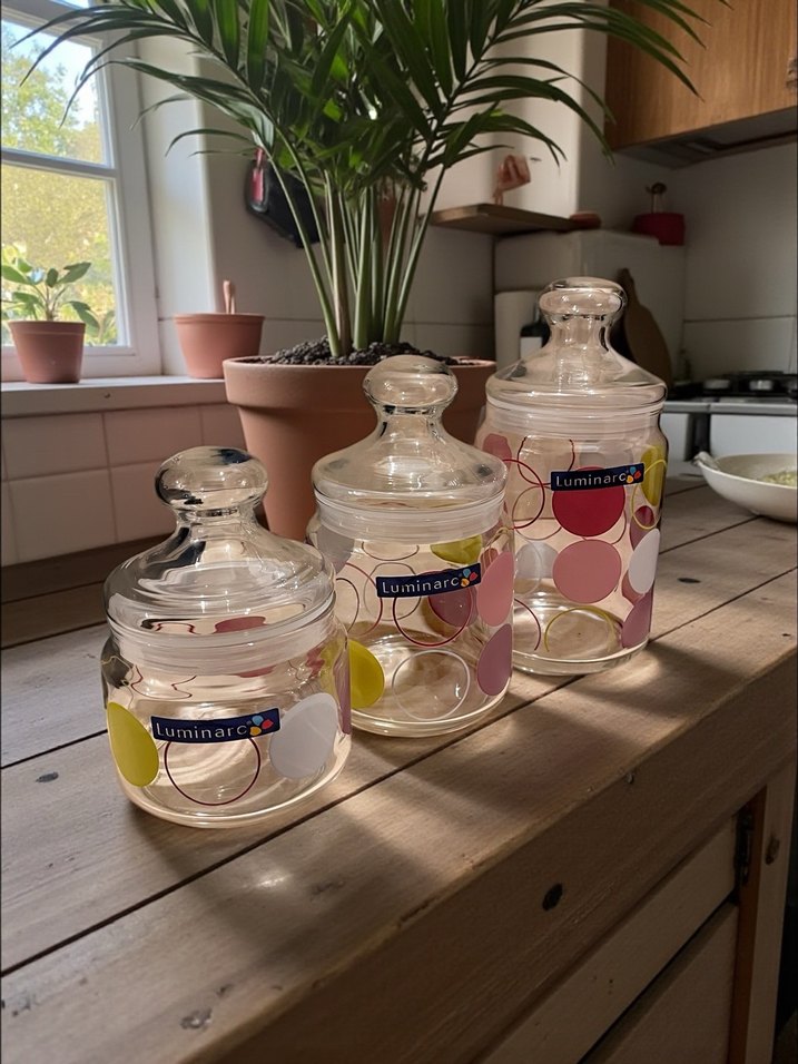 Luminarc 3'lü Desenli Cam Saklama Kavanozu
