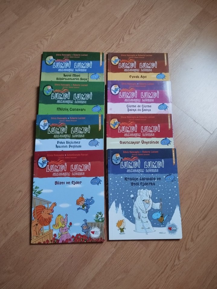 Renkli kapaklara sahip, hayvanlar, çizim ve macera konulu LUMPI LUMPI çocuk kitapları serisi.