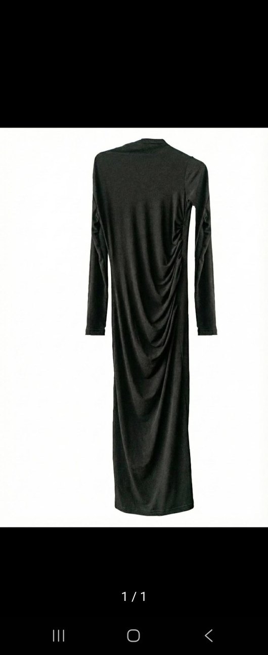 Drapeli tasarıma sahip, uzun kollu ve yüksek yakalı siyah uzun elbise. ofis kullanımı için ideal. Çok az giyildi.