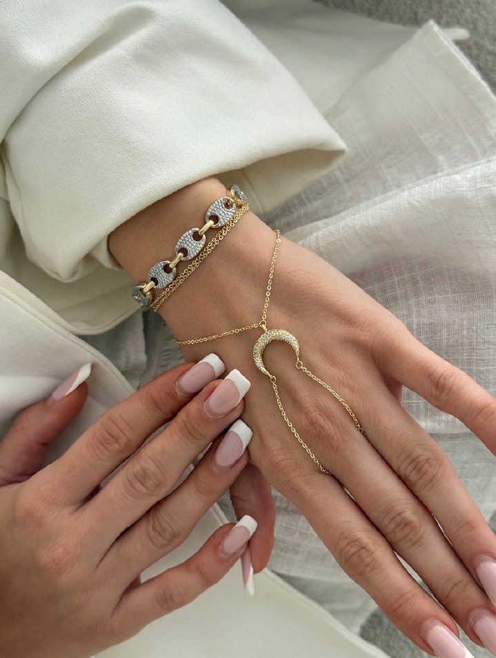 Luna Crescent Gold Şahmeran|Zirkon Taşlı Hilal Figürlü El Zincir
