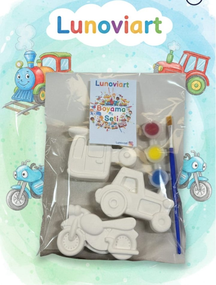 Lunoviart boyama seti, araç figürlü figürler ve çeşitli boya renkleri ile birlikte gelir, yaratıcılık için uygundur .