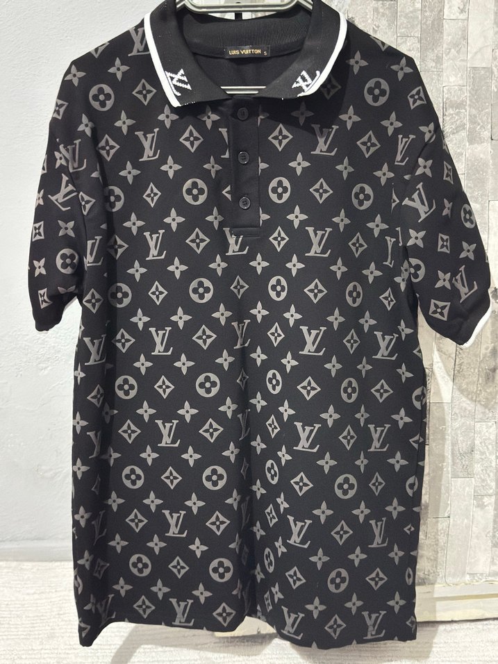 Düğmeli, kısa kollu siyah gri desenli erkek polo tişört, rahat kesim ve yakalı. Sentetik kumaştan, günlük sokak stili için uygundur.